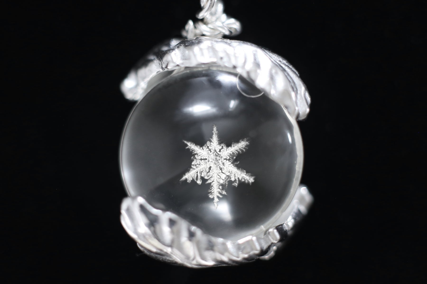 This pendant is very versatile. It was designed to be see-through to match with any outfit. Pair it with a dark top to make the snowflake stand out, or against your skin for a subtle look.