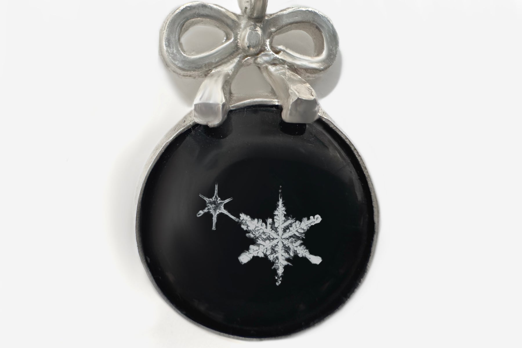 Delicate 5.0 mm snowflake with 2.9 mm baby, harvested in January 2024 in Yellowknife, Northwest Territories.