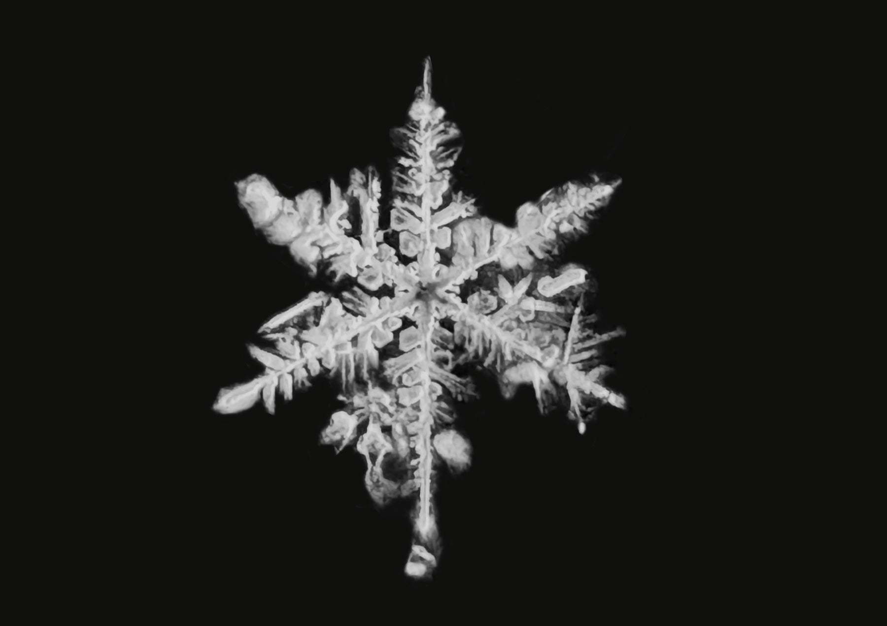 Intricate 6.6 mm snowflake with ultra detailed shape, harvested in January 2024 in Yellowknife, Northwest Territories.