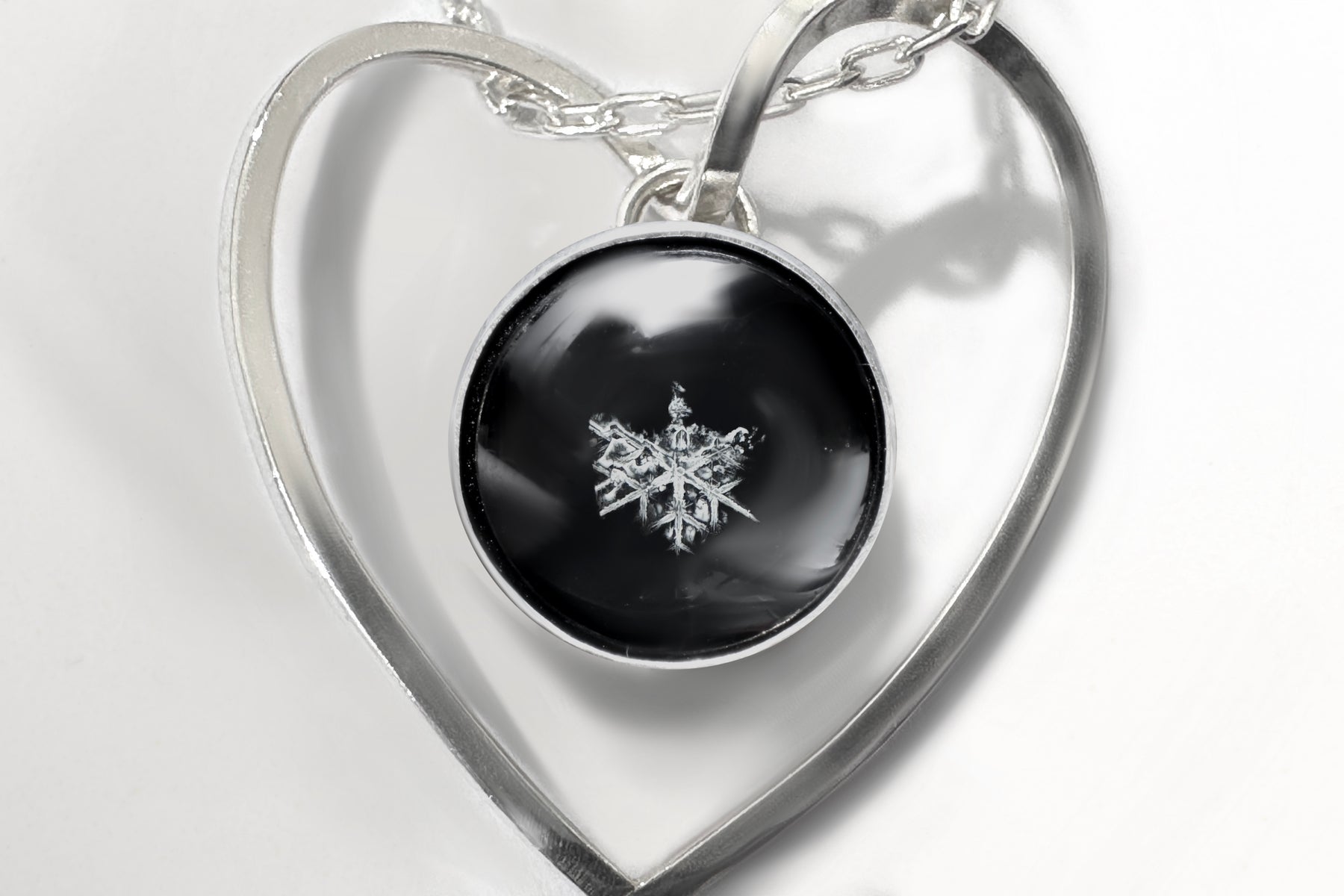 - An “Open Heart” pendant with the exact snowflake seen on the first picture (the rest of the images don’t reflect the exact snowflake you will receive);