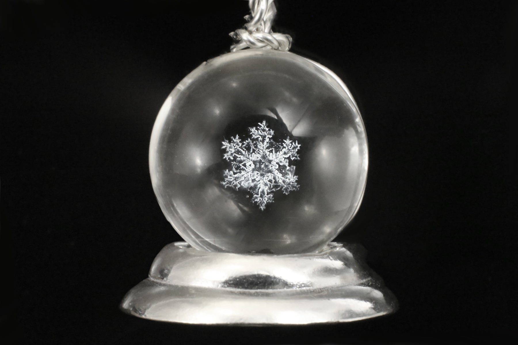 • A snowglobe necklace with the exact snowflake seen on the first picture (the rest of the images don’t reflect the exact snowflake you will receive);