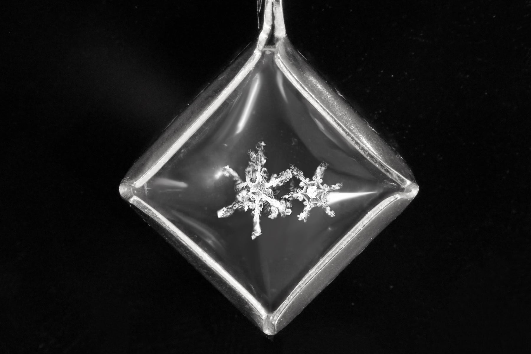 Snowflakes are like stars when they fall from the sky. The one in this pendant might have fallen to grant you a wish.