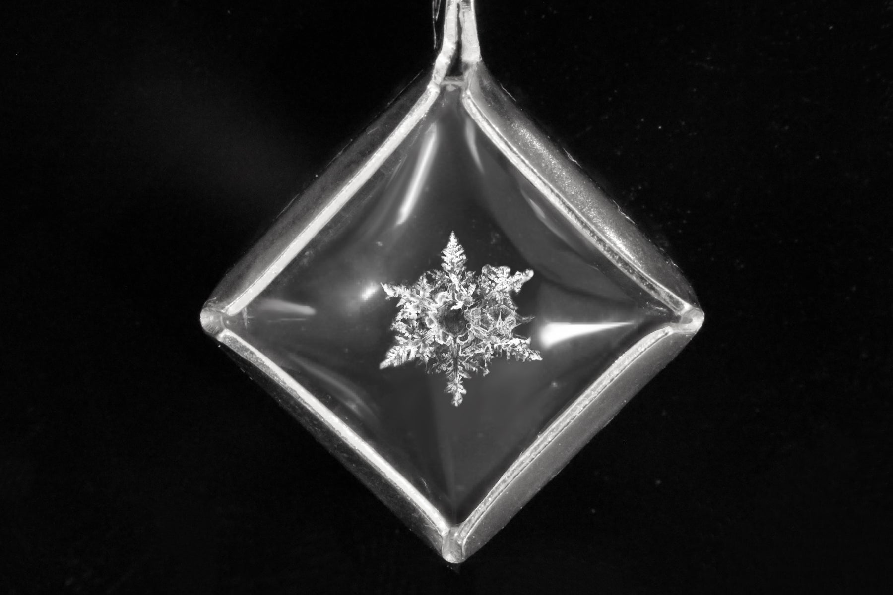Snowflakes are like stars when they fall from the sky. The one in this pendant might have fallen to grant you a wish.
